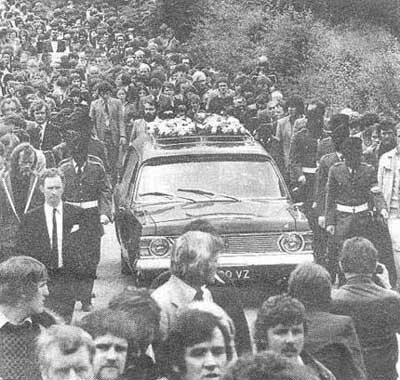 Hurson's funeral cortege making its way towards cemetery, with IRA honour guard.