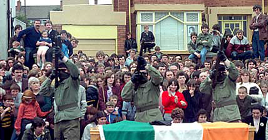 IRA firing party firing a final salute over Joe McDonnell's coffin.