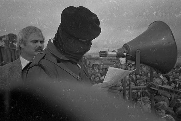 INLA member Neil McMonagle gives oration at Patsy O'Hara's funeral.