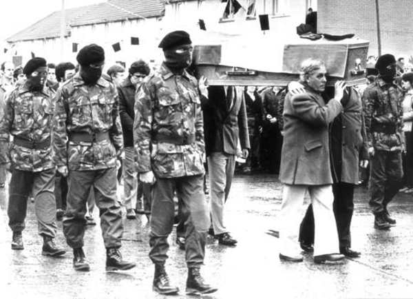 Bobby's coffin leaves his mother's Whiterock home in a procession headed to Milltown.