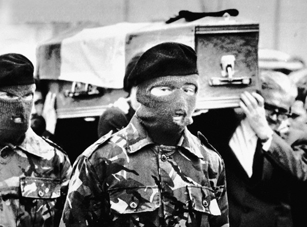 Bobby's coffin is accompanied by an IRA escort.